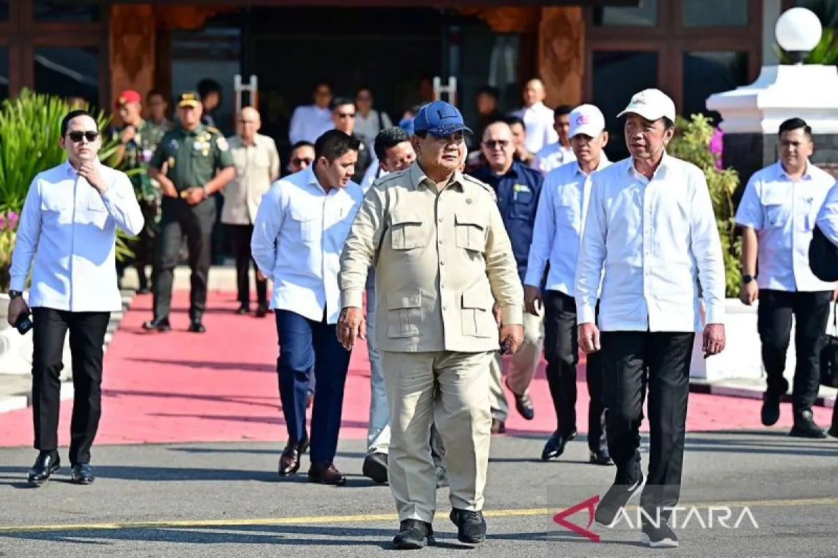 Jakarta (ANTARA) - Sekretaris Kabinet Letkol Teddy Indra Wijaya menyatakan Presiden Ke-7 RI Joko Widodo melepas keberangkatan Presiden Prabowo Subianto bertolak kembali ke Jakarta dari Pangkalan Udara TNI AU Adi Soemarmo, Boyolali, Jawa Tengah, Senin petang.