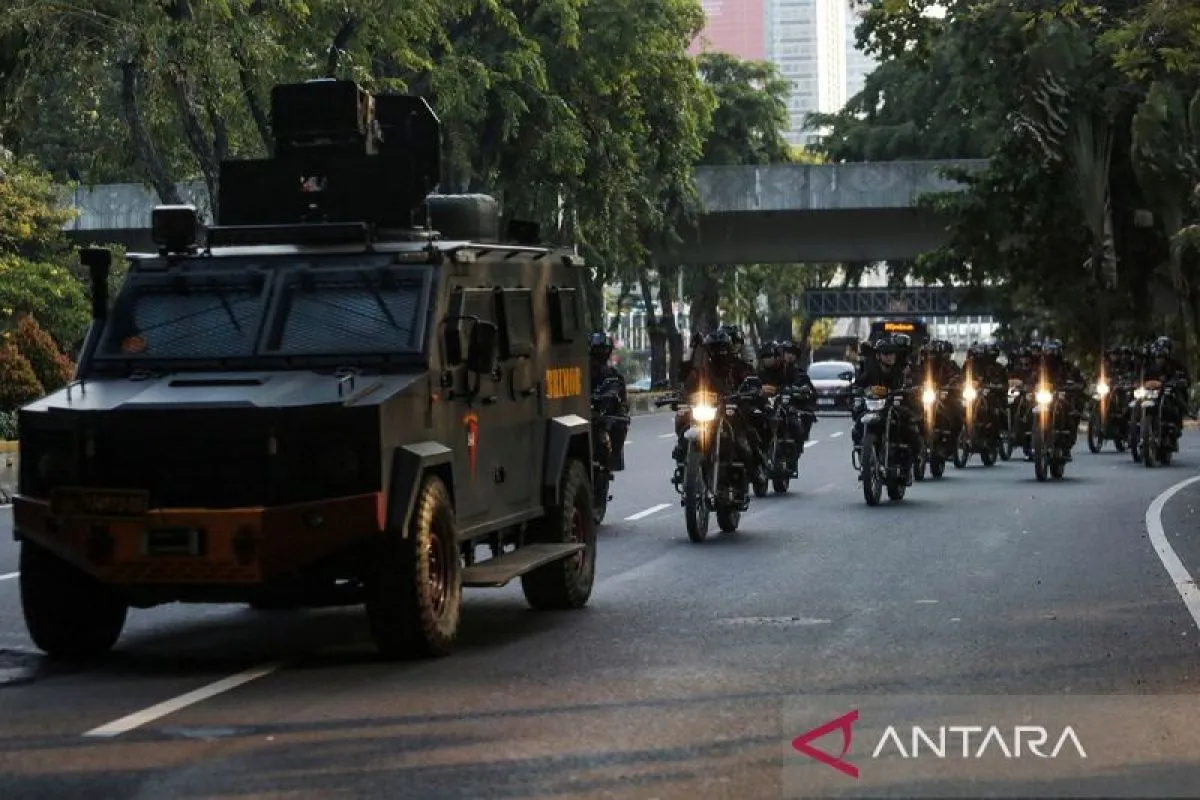Jakarta (ANTARA) - Polda Metro Jaya menggelar patroli skala besar berkeliling wilayah Jakarta pada Senin untuk menjaga keamanan dan ketertiban pasca aksi demonstrasi yang terjadi beberapa hari sebelumnya.