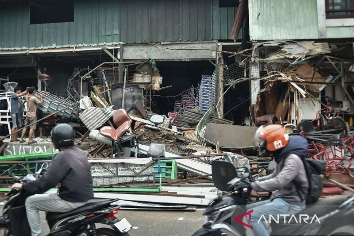 Dari kejadian tersebut, bus Transjakarta rusak bagian depan seperti kaca dan bumper serta halaman toko rusak.
