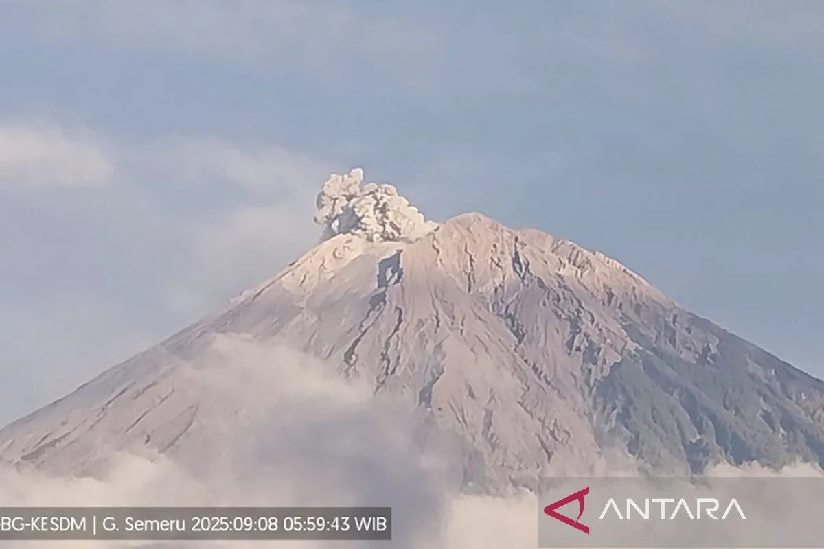 Sebelumnya pada pukul 05.59 WIB, Gunung Semeru erupsi dengan tinggi kolom letusan teramati sekitar 800 meter di atas puncak (4.476 mdpl).