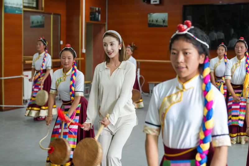 Siswa berfoto bersama guru Nyima Drolma (tengah) di Sekolah Menengah Kejuruan dan Teknik Lhasa No. 2 di Lhasa, Daerah Otonom Xizang, China barat daya, pada 9 September 2025. (Xinhua/Zhang Xiaoyu)Siswa berlatih Tari Reba di Sekolah Dasar Percobaan Lhasa di Lhasa, Daerah Otonom Xizang, China barat daya, pada 11 September 2025. (Xinhua/Jigme Dorje)