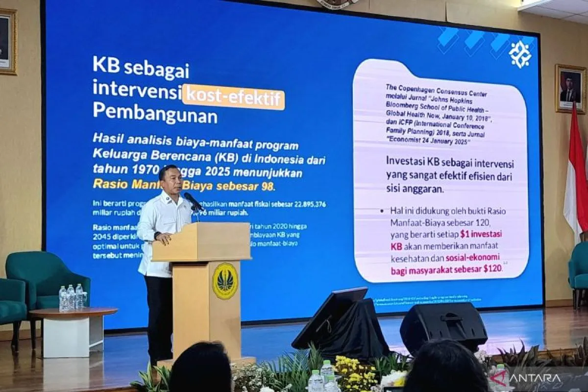 Jakarta (ANTARA) - Menteri Kependudukan dan Pembangunan Keluarga (Mendukbangga)/Kepala BKKBN Wihaji menilai investasi pada Program Keluarga Berencana (KB) atau kontrasepsi sangat efektif dan efisien dari sisi anggaran.