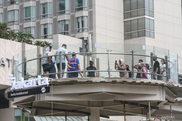 Jika ingin mendapatkan hasil foto yang lebih kece, kamu bisa naik ke area anjungan yang menawarkan latar jalan raya serta deretan gedung pencakar langit di sekitar Sudirman.