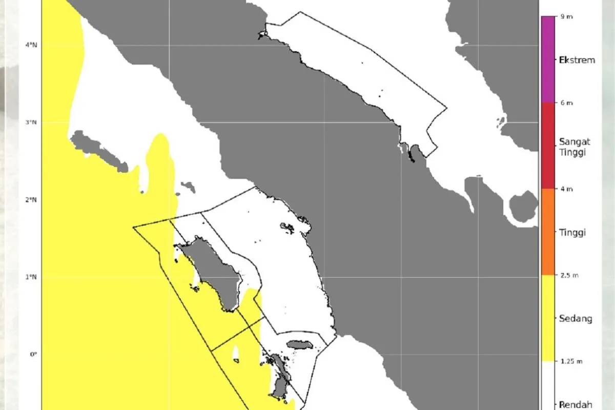 Gelombang tinggi tersebut berpotensi terjadi di perairan barat Sumatera Utara...