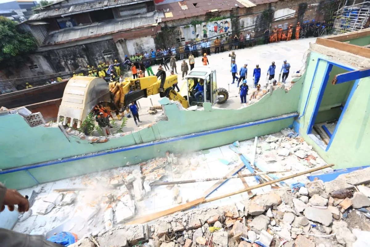 Proses pembongkaran tersebut dilakukan dengan menggunakan alat berat, seperti eskavator serta perkakas pendukung lainnya. Puing-puing bangunan liar itu kemudian diangkut dengan menggunakan dump truck untuk menjaga kebersihan kawasan.