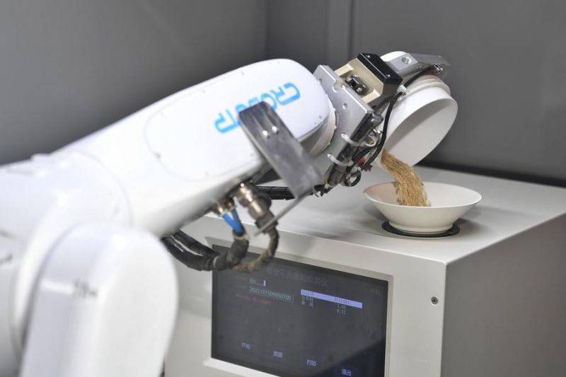 Seorang teknisi menyajikan sistem pemantauan hama bertenaga AI yang dipasang di dalam depot biji-bijian di perusahaan cabang China Grain Reserves Group (Sinograin) di Chengdu, Provinsi Sichuan, China barat daya, 15 Oktober 2025. Dalam beberapa tahun terakhir, teknologi canggih telah diterapkan dalam penyimpanan biji-bijian untuk secara signifikan meningkatkan efisiensi operasional dan kualitas biji-bijian selama penyimpanan. ANTARA/Xinhua//Liu Kun