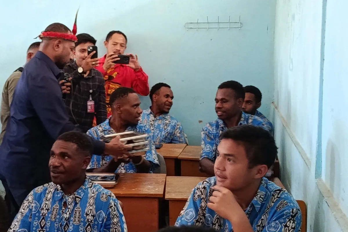 Wamena (ANTARA) - Anggota Komisi XIII Dewan Perwakilan Rakyat (DPR) RI Yan P Mandenas meninjau secara langsung Makan Bergizi Gratis atau MBG di Kabupaten Jayawijaya, Papua Pegunungan guna memastikan program nasional itu benar-benar dirasakan oleh pelajar di daerah tersebut.
