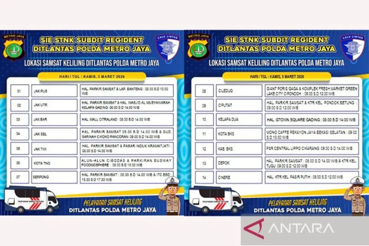 Baca juga: Samsat Keliling tersedia di 14 wilayah Jadetabek pada Jumat