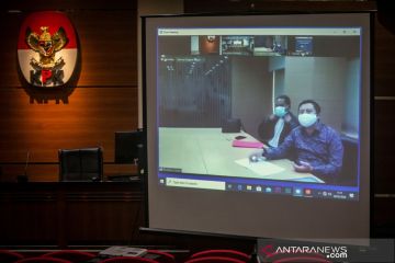 Terdakwa kasus dugaan korupsi penetapan pergantian antar waktu anggota DPR periode 2019-2024 Saiful Bahri (kanan) mengikuti sidang putusan secara virtual di Gedung KPK, Jakarta, Kamis (28/5/2020). Mantan staf sekjen PDIP tersebut divonis satu tahun dan delapan bulan penjara ditambah denda Rp150 juta subsider empat bulan kurungan karena ikut menyuap anggota Komisi Pemilihan Umum (KPU) periode 2017-2022 Wahyu Setiawan sebesar Rp600 juta. ANTARA FOTO/Aprillio Akbar/foc.