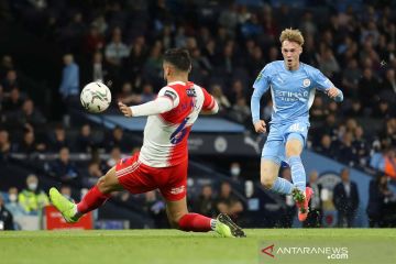 Pemain Manchester City Cole Palmer mencetak gol keenam saat laga babak babak ketiga Piala Liga Inggris (Carabao Cup) melawan Wycombe Wanderers di Etihad Stadium, Manchester, Inggris (21/9/2021). Manchester City menang dengan skor 6-1. ANTARA FOTO/Action Images via Reuters/Carl Recine/aww.