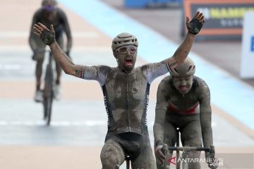 Bergelimang lumpur, pembalap sepeda Italia Sonny Colbrelli juara Paris-Roubaix