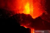 Gunung berapi Cumbre Vieja menyemburkan lava saat erupsi di Canary Island, La Palma, Spanyol, Jumat (9/10/2021). ANTARA FOTO/REUTERS/Juan Medina/foc.