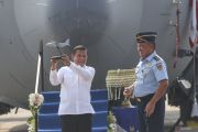 Wakil Menteri Pertahanan M. Herindra (kedua kiri) bersama Wakil Kepala Staf Angkatan Udara (Wakasau) Marsekal Madya TNI A. Gustaf Brugman (kiri) berjalan keluar usai meninjau pesawat saat serah terima pesawat C-130J Super Hercules dari Kementerian Pertahanan kepada TNI AU di Lanud Halim Perdanakusuma, Jakarta, Selasa (15/8/2023). Serah terima tiga dari lima pesawat C-130J Super Hercules itu nantinya akan ditempatkan di Skadron Udara 31 Lanud Halim Perdanakusuma, Jakarta untuk melaksanakan tugas-tugas TNI AU dalam mendukung angkutan udara dan Operasi Militer selain Perang (OMSP). ANTARA FOTO/Asprilla Dwi Adha/hp.