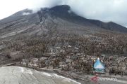 Foto udara kondisi permukiman warga yang rusak parah terdampak erupsi Gunung Ruang di Desa Laingpatehi Pulau Ruang, Kabupaten Kepulauan Sitaro, Sulawesi Utara, Jumat (3/5/2024). Dua desa yang berada di bawah kaki Gunung Ruang yaitu Desa Laingpatehi dan Desa Pumpente menjadi desa paling parah terkena dampak letusan Gunung Ruang dan puluhan rumah di lokasi tersebut tertimbun material abu vulkanik. ANTARA FOTO/Andri Saputra/nym.