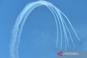 Pesawat KT-1 Wong Bee yang tergabung dalam Jupiter Aerobatic Team (JAT) TNI AU bermanuver di atas Bandara Internasional I Gusti Ngurah Rai, Badung, Bali, Rabu (18/9/2024). Atraksi udara Jupiter Aerobatic Team TNI AU tersebut untuk memeriahkan Bali International Airshow 2024. ANTARA FOTO/Fikri Yusuf/Spt.