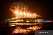 Pesta kembang api memeriahkan penutupan PON XXI Aceh-Sumut 2024 di Stadion Utama Sumatera Utara, Sumut Sport Centre, Deli Serdang, Sumatera Utara, Jumat (20/9/2024). Pelaksanaan PON XXI Aceh-Sumut 2024 resmi berakhir dan selanjutnya PON XXII akan diselenggarakan di Provinsi Nusa Tenggara Timur (NTT) dan Nusa Tenggara Barat (NTB) pada tahun 2028 mendatang. ANTARA FOTO/Rivan Awal Lingga/Spt.