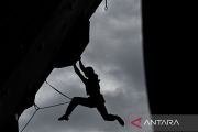 Atlet panjat tebing Jawa Timur Alma Ariella Tsani melakukan panjatan pada final kelas lead perorangan putri PON XXI Aceh-Sumut 2024 di Arena Panjat Tebing, Kompleks Stadion Harapan Bangsa, Banda Aceh, Aceh, Senin (16/9/2024). Alma Ariella berhasil meraih perak dengan poin 42+, sedangkan medali emas diraih atlet Jawa Barat Widia Fujiyanti dengan poin 43+, dan medali perunggu diraih Atlet DI Yogyakarta Sukma Lintang Cahyani dengan poin 42+. ANTARA FOTO/Wahyu Putro A/Spt.