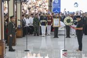 Panglima TNI Jenderal TNI Agus Subiyanto (kiri) mewakili negara menerima jenazah Wakil Presiden ke-6 Try Sutrisno dari pihak keluarga saat upacara penyerahan jenazah ke negara di Masjid Agung Sunda Kelapa, Jakarta, Senin (2/3/2026). Try Sutrisno wafat di Rumah Sakit Pusat Angkatan Darat (RSPAD) Gatot Soebroto, Jakarta, pada Senin (2/3) di usia 90 tahun. ANTARA FOTO/Hafidz Mubarak A/bar