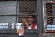 Koordinator Aliansi Masyarakat Pati Bersatu (AMPB) Supriyono menyapa pendukungnya seusai sidang vonis kasus tindak pidana pemblokadean jalur Pantura Juwana-Pati saat unjuk rasa pada Oktober 2025, di Pengadilan Negeri Pati, Pati, Jawa Tengah, Kamis (5/3/2026). Majelis Hakim memvonis Teguh Istiyanto dan Supriyono alias Botok dengan pidana penjara selama enam bulan yang tidak perlu dijalani dan masa pengawasan selama 10 bulan karena dinilai terbukti telah menghasut orang untuk melakukan pemblokadean jalan umum. ANTARA FOTO/Aji Styawan/nym.