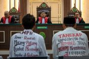 Hakim Ketua Muhamad Fauzan Haryadi (tengah) membacakan putusan terhadap Koordinator Aliansi Masyarakat Pati Bersatu (AMPB) Teguh dan Supriyono dalam sidang vonis kasus tindak pidana pemblokadean jalur Pantura Juwana-Pati saat unjuk rasa pada Oktober 2025, di Pengadilan Negeri Pati, Pati, Jawa Tengah, Kamis (5/3/2026). Majelis Hakim memvonis Teguh Istiyanto dan Supriyono alias Botok dengan pidana penjara selama enam bulan yang tidak perlu dijalani dan masa pengawasan selama 10 bulan karena dinilai terbukti telah menghasut orang untuk melakukan pemblokadean jalan umum. ANTARA FOTO/Aji Styawan/nym.