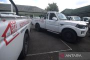 Perangkat desa mengendarai mobil saat pembagian kendaraan untuk Koperasi Desa Merah Putih di Kodim 0724/ Boyolali, Jawa Tengah, Kamis (9/4/2026). PT Agrinas Pangan Nusantara membagikan 71 unit kendaraan roda empat kepada sejumlah desa di Boyolali pada tahap pertama guna mendukung sarana operasional Koperasi Desa Merah Putih. ANTARA FOTO/Aloysius Jarot Nugroho/tom.