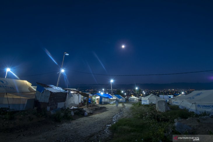 Warga korban bencana melintas di antara tenda-tenda penampungan sementara yang mulai rusak di Kelurahan Balaroa, Palu, Sulawesi Tengah, Selasa (19/3/2019). Sebagian tenda yang ditempati oleh sejumlah pengungsi mulai rusak karena sudah cukup lama digunakan, sementara itu mereka menunggu dipindahkan ke hunian sementara yang masih dalam tahap pembangunan oleh pemerintah. ANTARA FOTO/Basri Marzuki/foc.