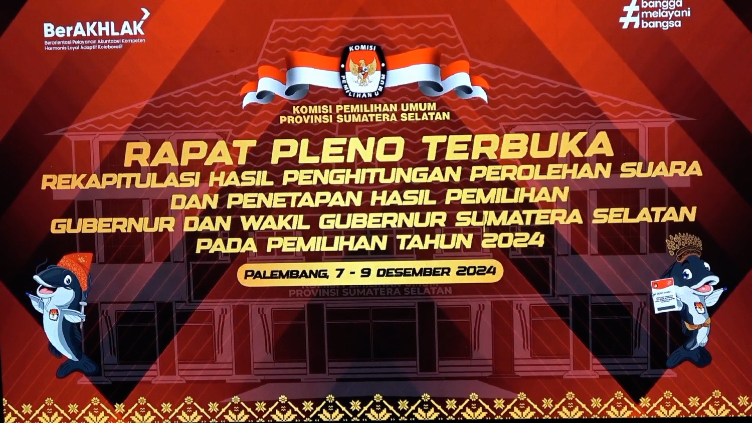 ANTARA - Hasil akhir rekapitulasi pemilihan gubernur dan wakil gubernur di Sumatera Selatan selesai dilakukan. Komisioner Komisi Pemilihan Umum (KPU) Sumatera Selatan Divisi Teknis Penyelenggara Pemilu Handoko pada Sabtu (7/12) menyebut, rekapitulasi selesai pada hari pertama walau sempat mengalami sejumlah kendala. (Winda Tri Agustina/Fahrul Marwansyah/Hilary Pasulu)
