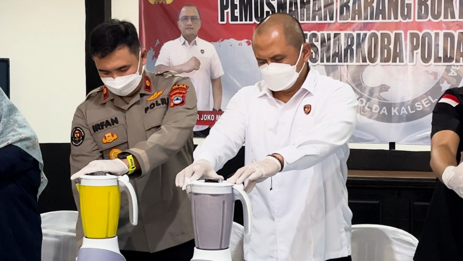ANTARA - Kepolisian Daerah Kalimantan Selatan (Polda Kalsel) memusnahkan barang bukti narkotika jenis sabu seberat 67,6 kilogram, ekstasi 30.613,5 Butir, dan serbuk ekstasi 42,98 gram hasil pengungkapan Direktorat Reserse Narkoba (Ditresnarkoba) Periode 30 Oktober 2025 hingga Januari 2026, Senin (9/2). Barang bukti tersebut berasal dari jaringan antar provinsi yang diduga masih terafiliasi dengan jaringan gembong narkotika Internasional Fredy Pratama. (Latif Thohir/Andi Bagasela/Rijalul Vikry)