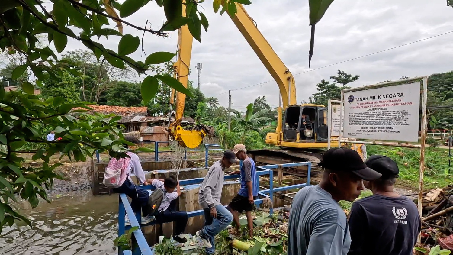 ANTARA - Pemkab Bogor membersihkan aliran Sungai Cikaret di Kecamatan Cibinong, Kabupaten Bogor, Jawa Barat pada Selasa (24/2), dari sampah yang menyumbat pintu-pintu air sebagai upaya mengurangi risiko banjir. Kegiatan yang berlangsung dua hari itu merupakan bagian dari pembersihan yang melibatkan perangkat daerah, TNI-Polri, dan unsur masyarakat. (Fadzar Ilham Pangestu/Andi Bagasela/Roy Rosa Bachtiar)