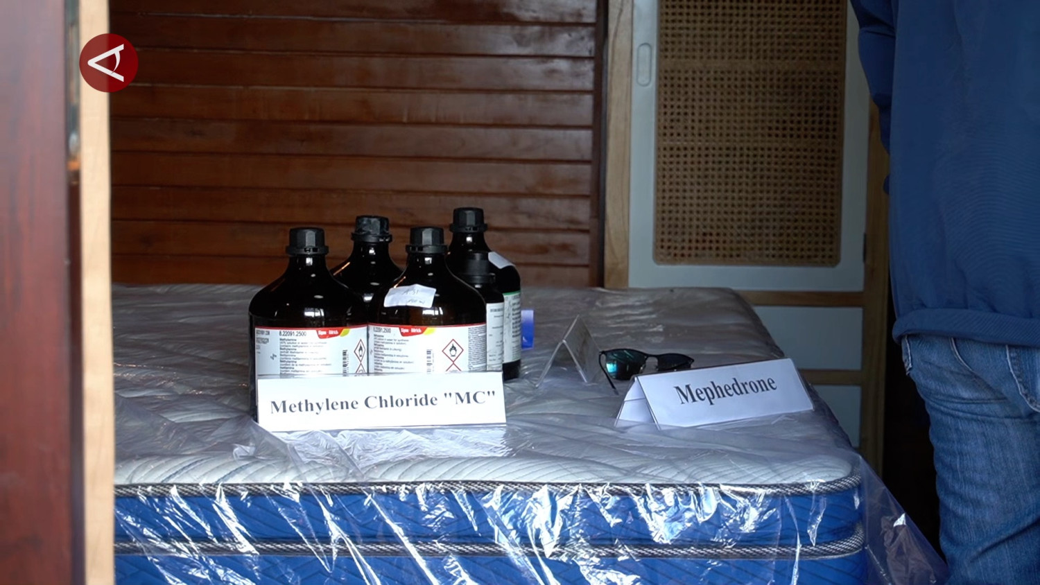 ANTARA - Badan Narkotika Nasional (BNN) mengungkap laboratorium gelap atau clandestine lab dari sebuah vila di Kecamatan Blahbatuh, Kabupaten Gianyar, Bali, Sabtu (7/3). Laboratorium gelap tersebut memproduksi narkotika jenis mefedrone yang dilakukan dua Warga Negara Asing (WNA) asal Rusia. (Rita Laura/Fahrul Marwansyah/Hilary Pasulu)