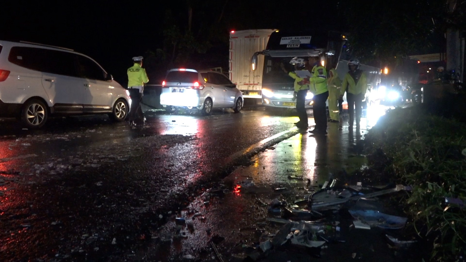 ANTARA - Kecelakaan lalu lintas antara minibus dan terjadi di Jalan Raya Limbangan, Garut, Minggu (15/3). Peristiwa tersebut terjadi di jalur mudik dari arah Bandung menuju Tasikmalaya, Jawa Barat. Tidak ada korban jiwa dalam insiden tersebut. Polisi telah melakukan olah tempat kejadian perkara (TKP) dan mengevakuasi seluruh korban dan kendaraan yang terlibat kecelakaan. (Afra Augesti/Bayu Pratama S, Pradanna Putra Tampi/Chairul Fajri/Nabila Anisya Charisty)